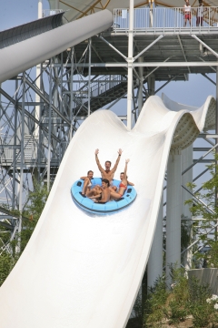 Аквафан является местом удовольствия, предлагающий испытать большие эмоции своим гостям на замечательных горках, в общей сложности более 3 км, от Tobogas Kamikadze, Extreme Speedriul, Surfin’hill, Twist… до новых Strizzacool (гигантская горка, по которой одновременномогут спускаться до 4 человек на одном матрасе).