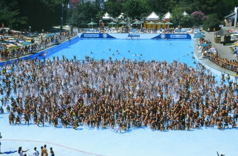 Имеется огромный бассейн, в котором с помощью специальных машин, дающим толчок 8000 кубических метров очищенной горячей воды, имитируется реальность океанских волн.