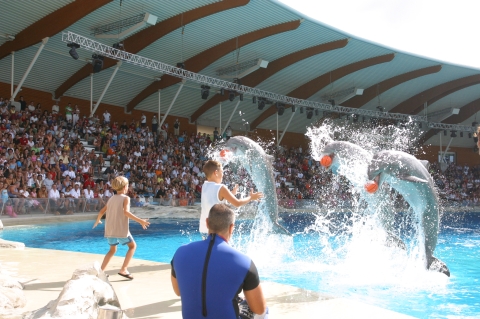 Бассейн дельфинов в Ольтремаре(Oltremare) является действительно исключительным с точки зрения размера и с точки зрения технологии. Команда тренеров состоит из девяти человек. Обучение осуществляется руками, на самом деле, когда мы являемся свидетелями зрелища тренера выполняют серию странных движений. Также используется свисток, который значит для дельфина «Ты сделал все правильно, плыви ко мне за наградой» которая как правило, рыба, игры, ласки. Это работа, что вы абсолютно не сможете импровизировать, она требует много терпения, много любви к животным, страсть и чувство ответственности и умение работать в команде.